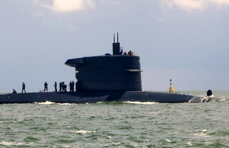Den Helderin sataman suuaukolla pyyhälsi nopea partiovene sininen vilkkuvalo välkkyen suoraan eteen ja virkapukuinen alkoi karjua ”Go back, go back!!!” Olimme ilmeisesti ei-toivottuja matkalaisia. Kun yhteinen vhf-kanava löytyi, selvisi tämä epäkohtelias vastaanotto. Sataman kapean suuaukon edessä oli sukellusvene juuri noussut pintaan ja jostain syystä sille annettiin etuajo-oikeus. Pari laivaston hinaajaa eivät siis olleetkaan meitä vastassa satama-altaan puolella. Tummanpuhuva sotakone lipui äänettömästi aivan Melinan editse ja mietimme pitäisikö tehdä lipputervehdys, saataisiin ehkä kannelle vipinää.