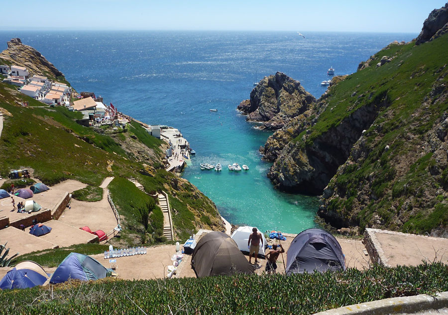 Lämmin aurinko paistoi jo aamusta eikä sumusta ollut edes muistoa. Tuuliosasto teki erikoistarjouksen; viisitoista luoteesta. Päätimme pitää turistipäivän. Berlengan luonnonpuistosaaret ovat Penichen niemen kulmasta tunnin matkan päässä moottoriveneellä, ja suunta luoteeseen. Vähän pohdimme millainen merenkäynti sataman vallien takana mahtaa olla ja sijoitimme takapuolemme viisitoista metrisen moottoriveneen takakannelle suojan puolelle. Ajattelimme pysyä kuivina. Reilut 20 muuta turistia täyttivät aluksen ja kippari pisti kaikki 1000 konia hörisemään. Jungmanni irrotti köydet ja aallonmurtajan takana alkoi kovasti selitellä portugaliksi, että ulkona merellä onkin hieman aallokkoa, mutta ei huolta. Älkää pelätkö, tämä tulee olemaan ihan normaalia. Vähän kysyvä ilme naamalla katsoimme kaveria, joka alkoi kysellä onko veneessä ketään, joka voisi kääntää meille ulkomaan eläville jutun englanniksi. Yksi viittasi ja näytti meille OK-merkkiä ja nosti peukalon pystyyn. Ymmärsimme yskän. Muut matkustajat eivät vaan ymmärtäneet jungmannin viestin merkitystä. Varttia myöhemmin lapset alkoivat huutaa, ensin iloisesta jännityksestä, sitten pienestä pelosta ja lopuksi silkasta kauhusta. Vene velloi hurjasti aallonharjalta toiselle. Kippari pysäytti välillä vauhdin kokonaan, kun sellainen kaksikerroksisen rivarin kokoinen aalto nousi eteen. Varttia myöhemmin melkein kaikki matkustajat puhuivat norjaa. Jungmanni juoksi salongin ja peräkannen väliä jakaen tyhjiä vaaleanpunaisia muovipusseja, otti paluumatkalla täydet tilalle ja heitti ne isoon roskikseen. Välillä vielä puhdasta paperia kasvojen pyyhkimiseen ja taas tuli uusi asiakas. Roskis alkoi täyttyä vaaleanpunaista täysinäisistä pusseista. Melkein paniikissa oleva pikkupoika yritti syödä froteepyyhettä, mutta sekään auttanut. Solkenaan itkevä isosisko vieressä yritti lohduttaa. Isällä oli muuta tehtävää. Perheen äiti näytti tekevän kuolemaa. Näytti siltä, ettei edes kaksi koukkuinen Rapala olisi pysynyt sisällä. Elettiin taudin vaihetta, jossa kuolemanpelko oli jo ohitettu. Enää pelättiin, ettei kuole. Tunsimme suurta sääliä matkatovereitamme kohtaan. Tuskastuttavan hitaasti Berlengan huiman kaunis saari lähestyi, mutta reilun tunnin kuluttua lähdöstä alus touvattiin liikkumattomaan kiveen. Aika moni oli kokenut elämänsä pahimman meriseikkailun.
