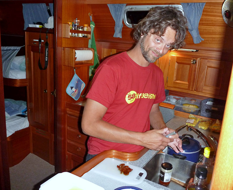 Aamulla kaikki oli ennallaan. Tuulta jostain ei-mitään ja luoteinen pitkä maininki alla. Masto heilui laajassa kaaressa puolelta toiselle ja Jammu jatkoi tasaista hurinaansa. Ensimmäinen vuorokausi tuotti 147 mailia lokiin. Hieman puuduttava matkanteko jatkui. Siihen toi kyllä mukavaa vaihtelua Valimo-osaston ammattitaito, joka taikoi vahtilistan mukaisesti sellaisia herkkuja pöytään, että hyvä oli niiden jälkeen kellahtaa komeroon vapaalle. Sääliksi kävi kannelle jääviä. Kulunut Trivial paketti kaivettiin myös esille ja kannelta kuului jatkuva virta kysymyksiä, joilla mitattiin miehistön viisautta elämääkin tärkeimmissä asioissa.
