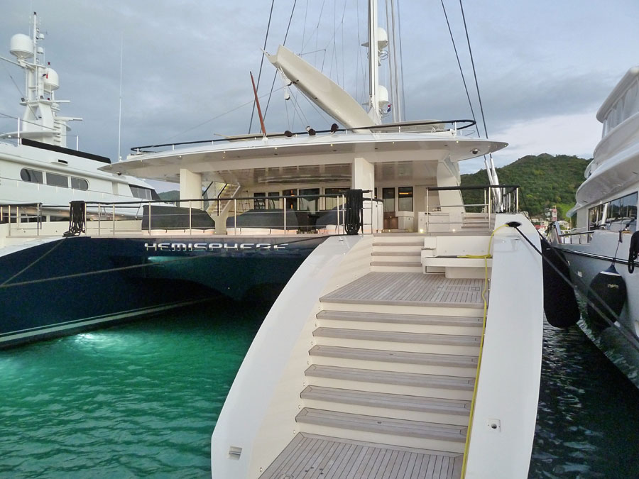 Reilu päivä saatiin katsella Marigotin ihmeitä. Marinan laituriin oli myös tullut maailman suurin, 145-jalkainen, luksuskatamaraani. Hemispheren chartraushinta oli 250.000 taalaa viikossa, jos nyt joku haluaa kokeilla millaista on purjehtia toisen kerroksen väen kanssa.