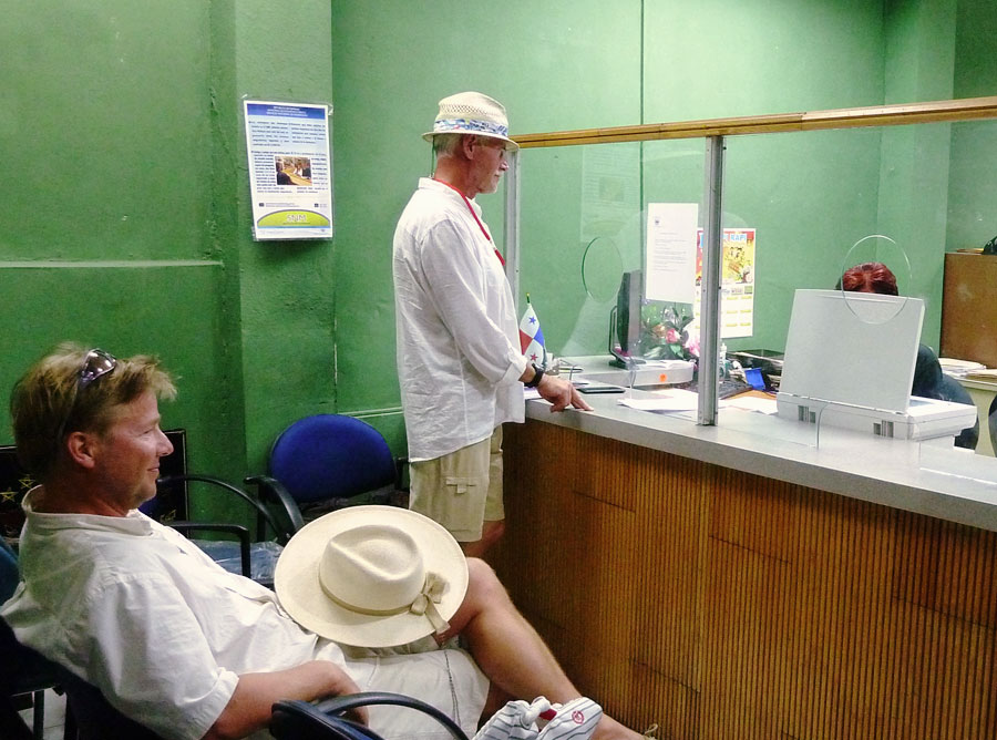 Marinan toimistossa homma hoitui vartissa. Vain kaksi tiskiä, joissa erittäin ystävälliset ja avuliaat kaverit saivat aikaan mielikuvan homman helppoudesta. Se mielikuva oli tosin väärä. Olimme etukäteen tehneet diilin kanava-agentti Erickin kanssa, joka hoitaisi koko Panaman kanavan läpiajoon liittyvän paperisodan. Erick hyppäsi Melinan kannelle jo aamupäivällä ja antoi ohjeita miten maahantulo muodollisuudet tulisi hoitaa. Ne eivät olleet ihan yksinkertaiset. Ongelma oli myös kansallinen vapaapäivä, joka päättyisi vasta iltapäivällä, joten homma voi siirtyä seuraavaan päivään.