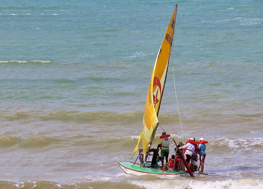 Jalkaisin kiertelimme vain niillä alueilla, joiden ilmoitettiin olevan turvallisia. Silti kaikki korut, sormukset ja luottokortit jätettiin veneeseen. Taskussa rahaa sen verran kun nyt juuri tarvitsi, sekä yksi NZ -pankin Visakortti, joka ei ollut enää voimassa. Kamerakin kulki paidan helman alla piilossa. Rantabulevardilla seisoskeli raskaasti aseistettuja pollareita 100 metrin välein. Osalla teksti selässä: Policia turistica. Hmm – pitääkö täällä olla omat poliisit turisteille? Sekä päivällä että iltaisin kaikki näytti ihan turvalliselta ja normaalilta. Alueella kuljeskeli paljon myös varttunutta väkeä ja lapsiperheitä. Ja Fortalezan jokainen itseään kunnioittava kuntoilija harrasti liikuntaa rantabulevardilla tai hietikolla. Ei todellakaan pelottanut. Toisaalta hotellimme varoitti kävelemästä edes 300 metrin päähän pieneen ostariin. Juuri siinä välissä on vaarallinen alue. Noita riskialueita oli sitten siellä täällä ja vieressä taas ihan mukavaa turvallista seutua. Mikähän se pitää konnat vain omilla kulmillaan? Me noudatimme ohjeita, emmekä ole kokeneet mitään ongelmia. Ehkä siinä on onneakin mukana.