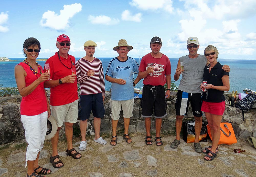 Vappujuhlatkin ehdittiin pitää tutussa paikassa ennen Melinan telakkaretkeä. Fort Louisin Marinassa tapasimme suomalaisen sy Mona F:n ja jo tutun Ironsiden. Kapusimme heidän kanssaan vappupäivän aamuna rannan reunassa olevalle kukkulalle, jossa tuo Fort Louisin linnake, tai sen jäänteet, sijaitsee. Siellä pidimme taas kuplivat nyyttärit vuoden 2006 tapaan. Maisema oli edelleen upea, ilma helteinen ja juomat kylmiä. Muistelimme lämmöllä lajitovereita Suomen räntäsateisessa vappusäässä.