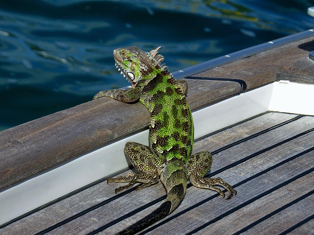 Tämä gekko viihtyi Melinan puhtaalla kannella.