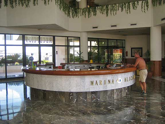 Pari päivää saimme seilata lähes sileässä vedessä kevyissä etelänpuolisissa tuulissa oman kurssimme ollessa keskimäärin lounaaseen. Aurinko paistoi ja lämmintä oli edelleen melkein kolmekymmentä astetta. Elämä tuntui aika helpolta. Uudeksi satamakohteeksi valitsimme Alicanten, joka on alueen suurimpia kaupunkeja. Baleaareilla löytyi hienoja satamia, mutta ei voi moittia tätäkään. Marina Alicanten reception oli kuin viiden tähden hotellin sisääntuloaula. Marmoroidun tiskin takana istui kaunis espanjatar, joka hoiteli meille sataman viimeisen suojaisan paikan parin viisikymmentäneljäjalkaisen väliin. Tilaa jäi molemmin puolin runsaasti. Laitureille pääsi omalla autolla suoraan veneen kohdalle. Kaijoilla olikin melkoinen tihentymä Jaguaareja, Bemuja ja Mersuja. Ei kuitenkaan alle kolmilitraisia.