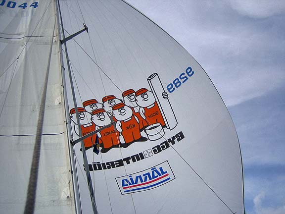 Torstain ja perjantain välisen yön etenimme taas ilman spinnua, mutta kelasimme silti vauhtia 7 solmua. Yksi kansivahti riitti ja muut pitivät silmäsairaalaa. Perjantaina nostimme kevyen tuulen spinnun, jossa neliöitä on enemmän kuin suurperheen arava-asunnossa. Leikkasimme kevyesti ja Melinan loki naputti tasaista 6,5 solmua. Tuulta oli saman verran metreissä. Aika ajoin kannelta kuului kovaa meteliä. Joku oli nähnyt veneen horisontissa. Olimme lähimmillään vain muutaman mailin etäisyydellä, mutta kaikki veneet jäivät tunnistamatta.