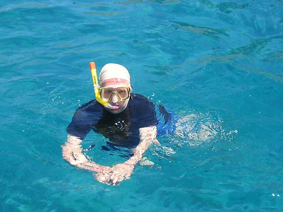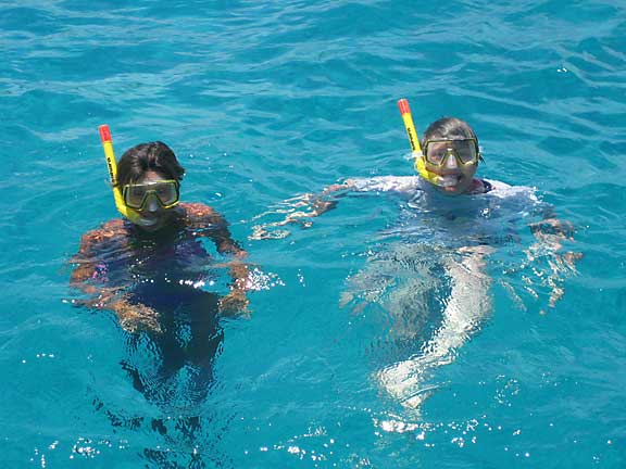 Försti opetti Hannan käyttämään snorkkelia ja eipä aikaankaan, kun Melinassa oli kaksi vedenneitoa, joita ei meinannut saada takaisin kannelle. Vasta kapun laittama lounaspala sai tytöt nousemaan vedestä. Sen jälkeen riitti juttua kaloista ja korallista. Jatkoimme illaksi Ile Fourchen suojaiseen lahteen, josta löytyi vielä vapaa mooringpoijukin. Ensimmäiseksi kaikki menivät taas uimaan; kilpikonnat odottelivat vieraita. Yöllä tuuli vinkui oikein urakalla. Tällaista 15 metrin menoa ei oltu nähty ja kuultu pariin kuukauteen, joten kapu kapusi kannelle pariin kertaan varmistamaan poijun pysymisen paikallaan. Hyvin pysyi.