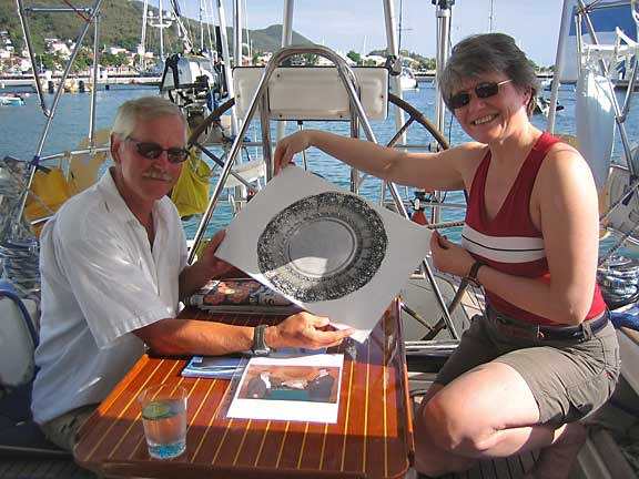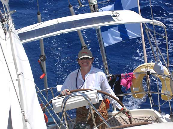 Haaveet haipuivat rankkaan sadekuuroon, jonka jälkeen suuntasimme keulan pohjoiseen kohti St.Maartenin Simpson Bayn edustaa. Itäinen pasaati puhalteli vaimeana, mutta neljän viiden metrin henkäys sai Melinan kulkemaan iloisesti kolmekymmentä mailia alle viidessä tunnissa. Hanna pääsi nyt vuorostaan katsomaan Simpson Bayn kelluvat palatsit; on niissä ihmettelemistä vaikkei mieli tekisikään. Perinteitä noudattaen nykäisimme Pinacoladat naamaan sillankulman kuppilassa. Tarjoilijapoikakin tervehti kuin vanhoja tuttuja.