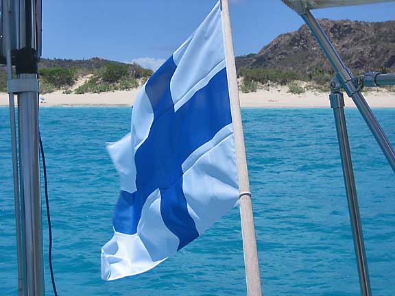 Vappuna Marigotin lahdelta löytyi yhteensä viisi suomalaisvenettä, Annamin, E rica, Joneca, Venla, ja Melina. Vappuaamuna kiipesimme joukolla paikallisen Ullanlinnanmäen, Fort Louisin kukkulalle brunssivarusteiden kanssa. Kuohuviinit olivat kylmänä ja rullaati rullaati soi. Omatekoiset karnevaalihatut herättivät ansaittua huomiota kylän raitilla ja muutenkin yritimme muokata Suomi-kuvaa iloisempaan suuntaan.