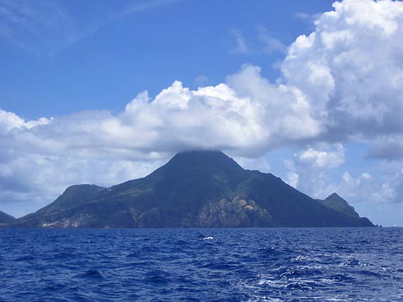 Statian pohjoispuolella noin 25 mailin päässä on Saban saari, jonka olimme jättäneet viimeiseksi helmeksi Caribian kierroksella. Saari on pieni, pyöreä ja korkea. Rannat ovat hyvin jyrkät eikä saarella ole mitään kunnon satamaa. Sinne voi mennä vain pienen tai kohtuullisen mainingin vallitessa eikä rantautuminen silloinkaan ole varmaa. Saaren reunoilla on muutamia mooringpoijuja, joihin voi kiinnittyä, koska rannan jyrkkä syveneminen estää ankkuroinnin. Siis niin hankala kohde veneille, että nytkin saaren rannassa oli vain yksi toinen purjevene.