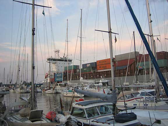 Neljäs kerta Kielin kanavaa ei enää saa päätä kiertymään maisemien katseluun. Ne on nähty ja todettu aika vaatimattomiksi. Kapu järjesteli valokuvia ja ratkoi ristisanoja, försti taas siivoili venettä ja tuuletti paikkoja, vuorotellen pidettiin ruorivuoroa. Päivä oli edelleen aurinkoinen ja todella lämmin, aina Holtenaun sulkuun asti. Samalla kun sulku aukeni, alkoi salamoida ja tummat ukkospilvet vyöryivät kohti. Ajelimme parisen mailia Kielin lahtea Laboan uuteen Baltic Bay marinaan ja saimme köydet kiinni kreivin aikaan. Kapu lähti juoksujalkaa sataman toimistoon hoitamaan maksut kuntoon. Sinne asti pääsi vielä kuivin jaloin, mutta sitten taivas repesi. Kahdenkympin satamamaksun vastineeksi tarjolla oli superhyvät palvelut. Kaikki oli uutta, puhdasta ja toimivaa. Edelleen loistava hinta-laatu suhde. Ankara salamointi ja kaatosade jatkui toista tuntia, joten försti pakkasi vihdoin itselleen parit gore-takit päällekkäin ja lähti pelastamaan kapun sateen saartamasta satamatoimistosta. No, kapuhan oli tällä välin luovinut räystään alla kulman takana olevaan kuppilaan ja nautti sy Sarannen miehistön kanssa geeteetä. Tarjoilija toi yhden lisää ja sitten meillä kaikilla oli niin mukavaa.